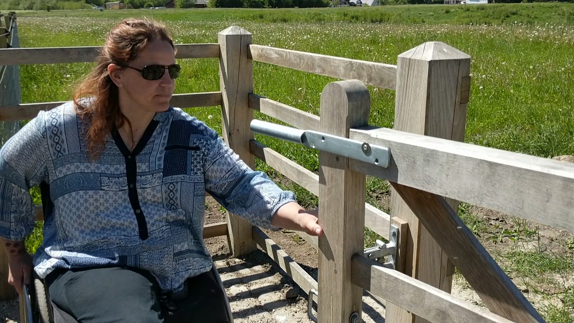 Med denne gennemførte konstruktion kan kørestolsbrugere og andre bevægelseshæmmede bekvemt få adgang til indhegnede naturområder og folde, hvor der går dyr. Udviklet i samarbejde med Dansk Handicap Forbund.
