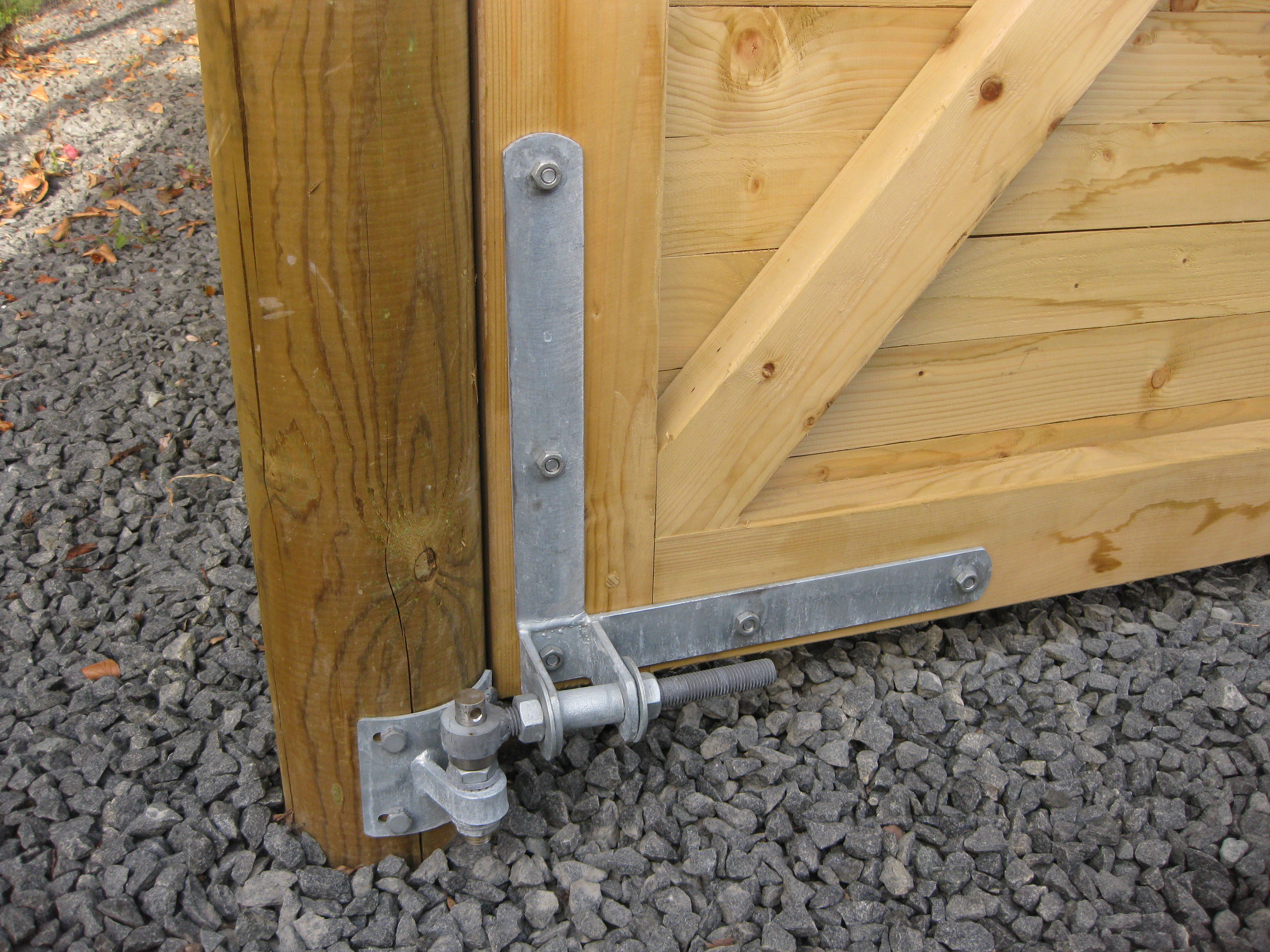Porten leveres desuden med en solid, varmgalvaniseret skudrigel og stop i egetræ.